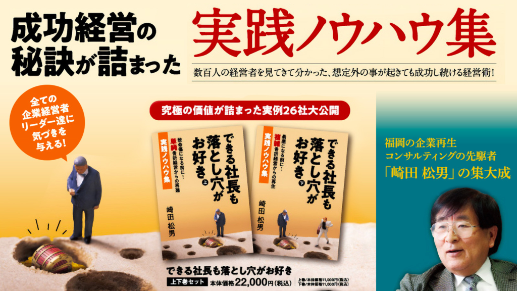 近く刊行する『できる社長も落とし穴がお好き』(上・下巻)は、長年、経営コンサルタントとして企業再建や企業再生を手掛けてきた私にとっては、集大成ともいえる著作です。 銀行員を振り出しに商社勤務を経て会計事務所に勤めた後、経営コンサルタン...